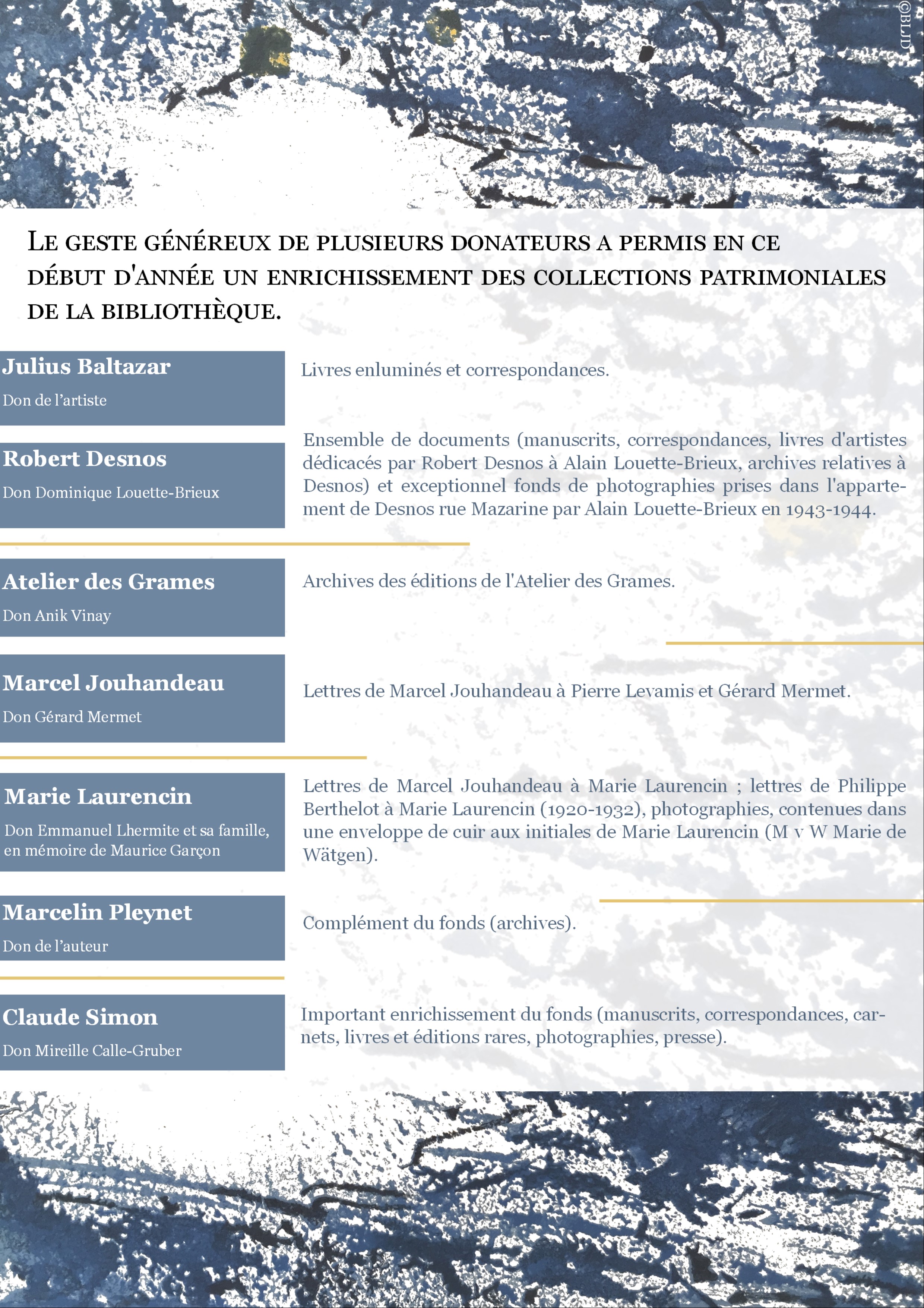 Le geste généreux de plusieurs donateurs a permis en ce début d'année un enrichissement des collections patrimoniales de la bibliothèque.