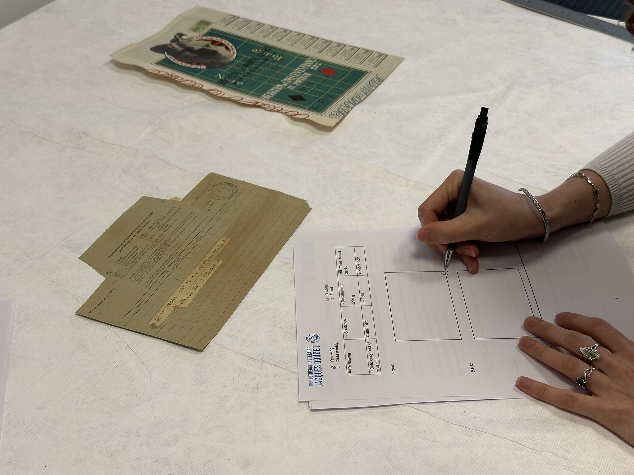 Petit aperçu des constats d’états des documents réalisés avant leur départ pour New-York : en effet, le MoMA accueille une exposition consacrée à Marcel Duchamp, rétrospective qui se déplacera ensuite au Philadelphia Museum of Art. La BLJD y présentera la « roulette de Monte-Carlo », un photomontage de Marchel Ducamp, ainsi qu’un télégramme de Croty à Tzara.