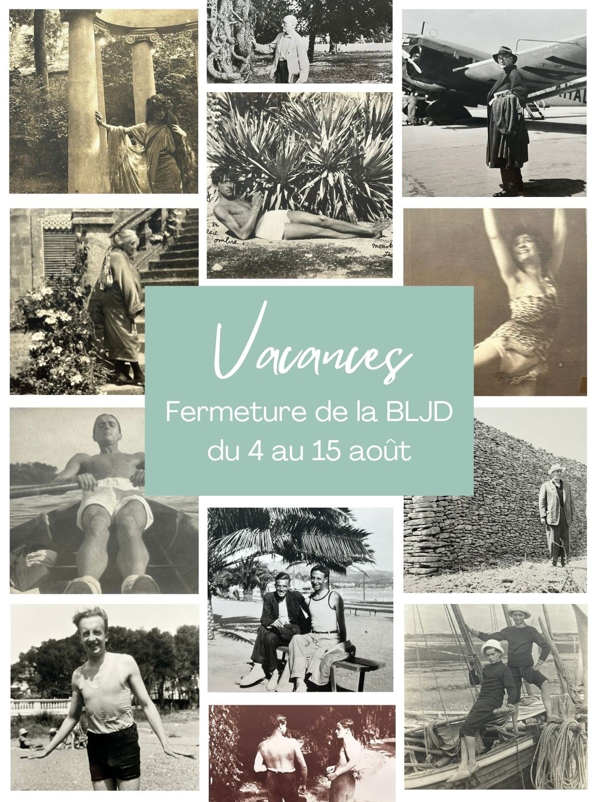 Comme ces auteurs, l'équipe de la BLJD part en vacances. La bibliothèque sera fermée du 4 au 15 août 2025. Nous vous souhaitons un bel été !