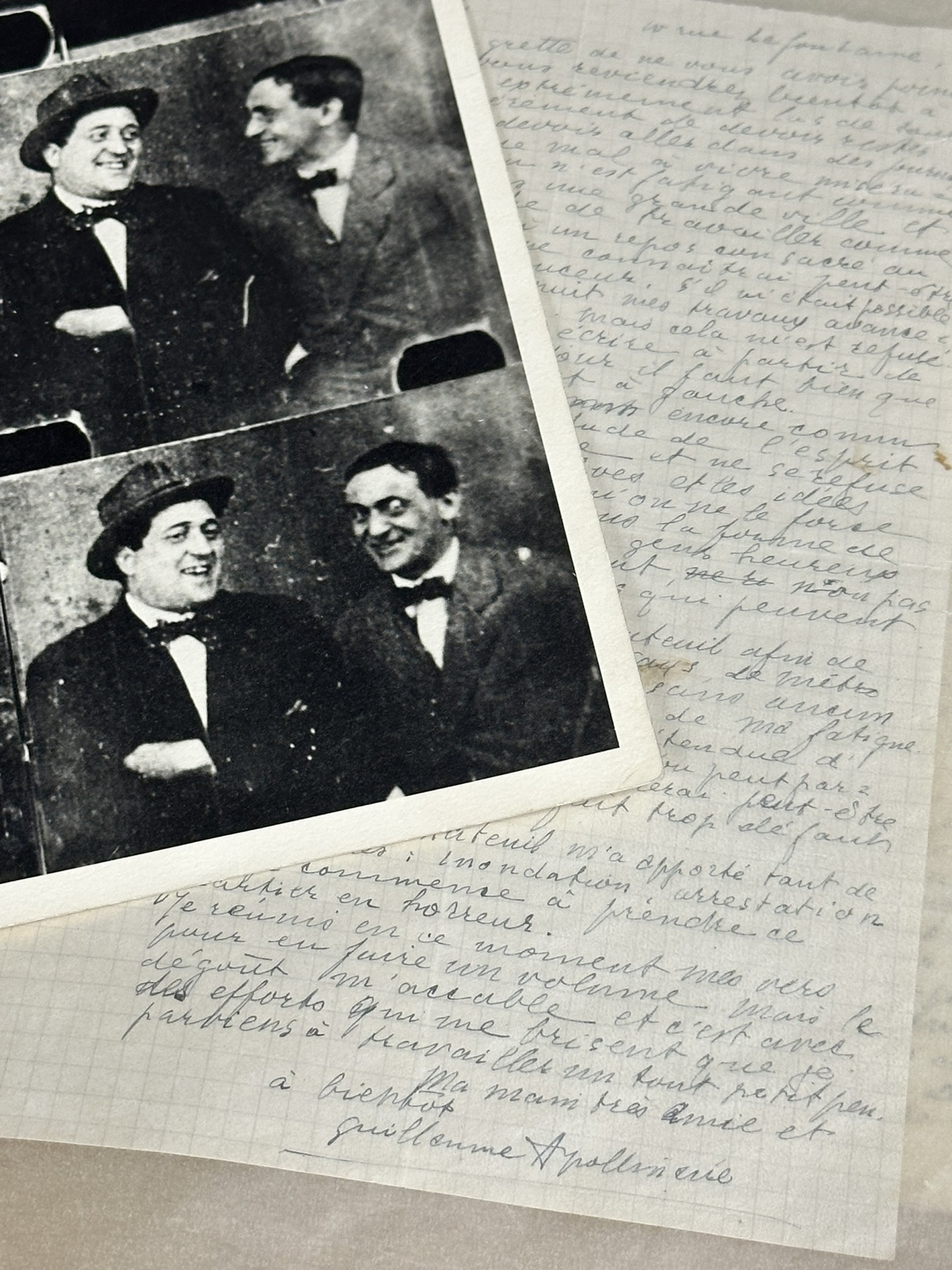 Sur la photo : Lettre d'Apollinaire à Gide (Gamma 9 (1)) et photographie d'Apollinaire et André Rouveyre (ING 19).