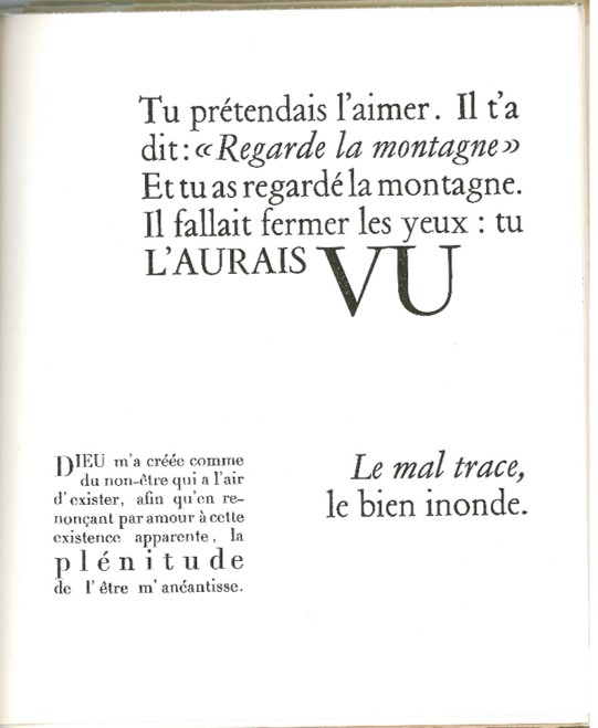 « J'étais marié avec ce que je faisais professionnellement. À Saint-Maurice par exemple, j'avais installé un tabouret de piano à côté de mon lit. J'y posais le livre que je venais d'imprimer et lorsque je me réveillais la nuit, je regardais mon livre, sa mise en page, et j'en tirai une satisfaction très grande. »[1]