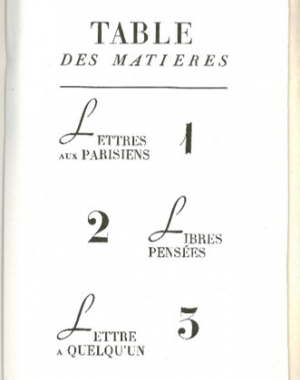· essais (Abattages clandestins, 1943 ; La Bête à bon dieu, Dialogue à bâtons rompus sur le luxe et sur l'homme, 1944 ; Lettres aux Parisiens, 1944-1946 ; Le Règne arrive, 1945 ; Le Bal des ardents, 1953 ; D’Homme à homme, 1957 ; Ecrit dans le vide, 1957 ; La Terre de feu, 1957 ; etc.),