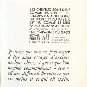 [3] Dans l’ordre chronologique : Henri Michaux, Marcel Béalu, André Fayol, Apollinaire, Jean Ferry, Antonin Artaud, Jean Paulhan, André Gide, Malcolm de Chazal, Francis Ponge, Jean Dubuffet, André Martel, Marcel Jouhandeau, William Saroyan, Bernard Collin, Monique Apple.