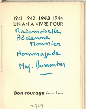 Le calendrier 1941-1944 porte non seulement la mention « Un an à vivre pour