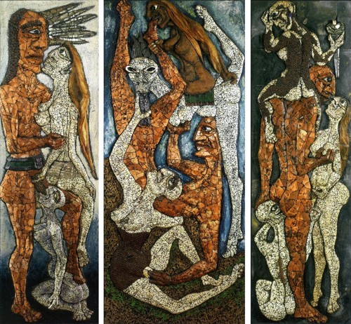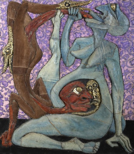 Les figures totémiques sont généralement surprises dans des jeux érotiques et cruels, la quête de l’unité passant par Eros et Thanatos.