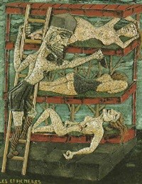 au milieu de formes gonflées d'érotisme, émanées de lui et revenant sur lui, enfermé dans leur barrage comme à l'intérieur d'un carré magique, P. Bettencourt depuis deux ou trois ans vivait avec elles, ne les montrant que de loin en loin […]