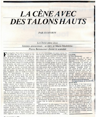 P. Bettencourt dans ses œuvres colossales et irritantes, […] un indiscutable pouvoir de choc. […] et on ne nous épargne aucune laideur. Mais cela doit exister, une mystique de la vomissure. Révoltant mais quelque fois grandiose. Avec une belle démangeaison de la matière. Allez-y vous faire gifler.[2]