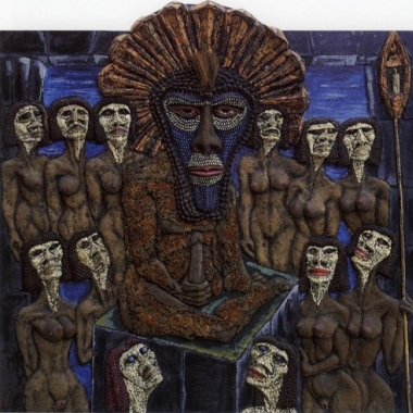 Rappelons le cycle des idoles portatives de 1978. La fixité des masques, les gestes hiératiques, les postures mécaniques des figures totémiques servent cet aspect cultuel.